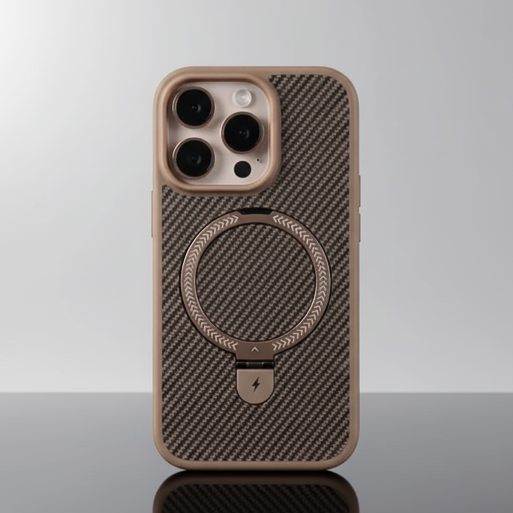 Material Premium: Fibra de carbono sintética com textura antiderrapante + bordas em TPU flexível que absorvem impactos